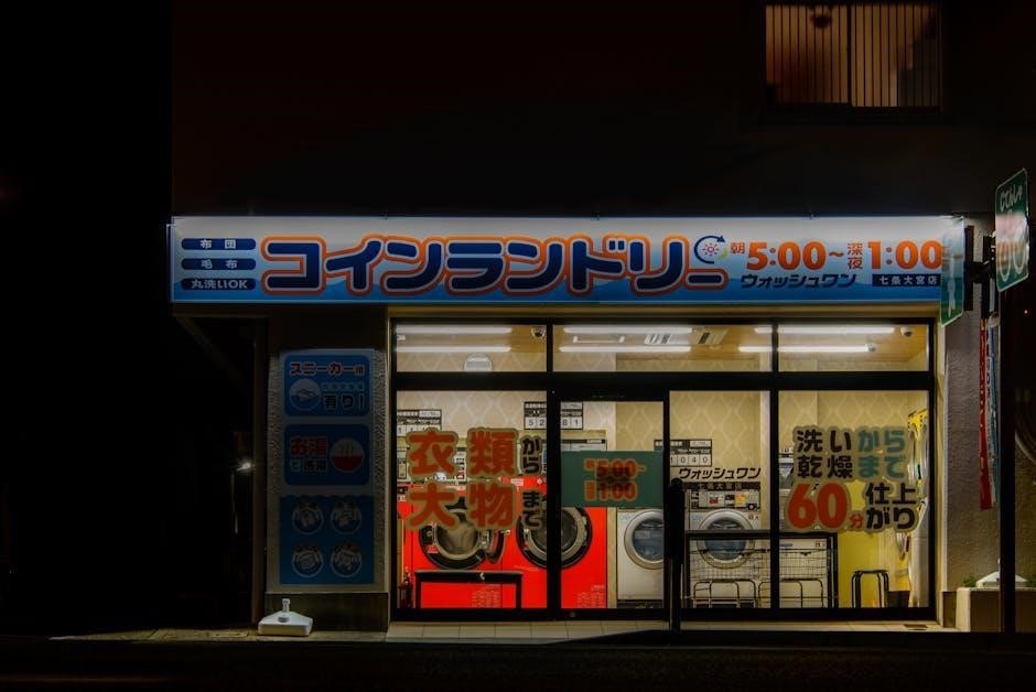 Selecting the right washer cycle on your GE Spacemaker is essential for optimal cleaning. Choose from options like delicate, normal, or heavy-duty cycles based on fabric type and soil level. For tough stains, use the soak function by stopping the cycle and letting garments soak before completing the wash. Always refer to the Controls Setting Guide in the manual for specific cycle details. Fabric softeners can be added during the wash cycle, following the manufacturer’s instructions. For delicate fabrics, select the gentle cycle and ensure items are rinsed thoroughly. Remember to check fabric care labels for special instructions. Proper cycle selection ensures efficient cleaning and protects your clothes from damage. Follow the manual’s guidelines for best results and to maintain your washer’s performance.